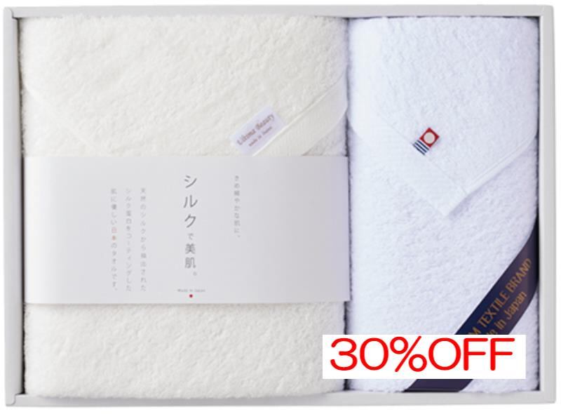 商品内容:内容/ワイドバスタオル(シルクプロテイン加工):68×130㎝×1・フェイスタオル(今治起毛加工):33×75㎝×1