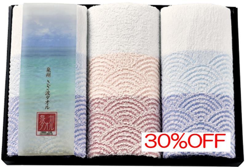 内祝 お返し引出物に 泉州さざ波 フェイスタオル3枚セット AM60-200