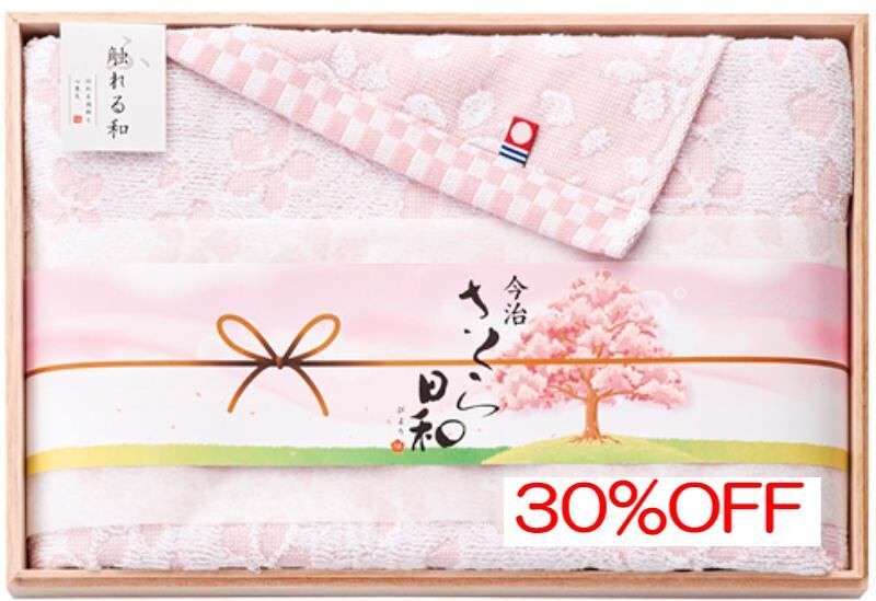 内祝 お返し引出物に 触れる和 さくら日和 木箱入り今治フェイスタオル FK-7021