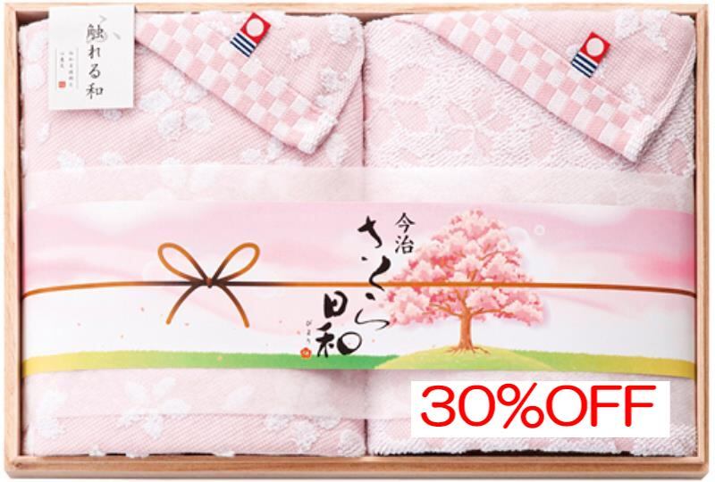 内祝 お返し引出物に 触れる和 さくら日和 木箱入り今治タオルセット FK-7026