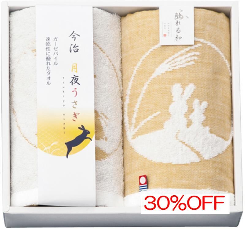 内祝 お返し引出物に 触れる和 月夜うさぎ 今治フェイスタオル2枚セット IF-5720