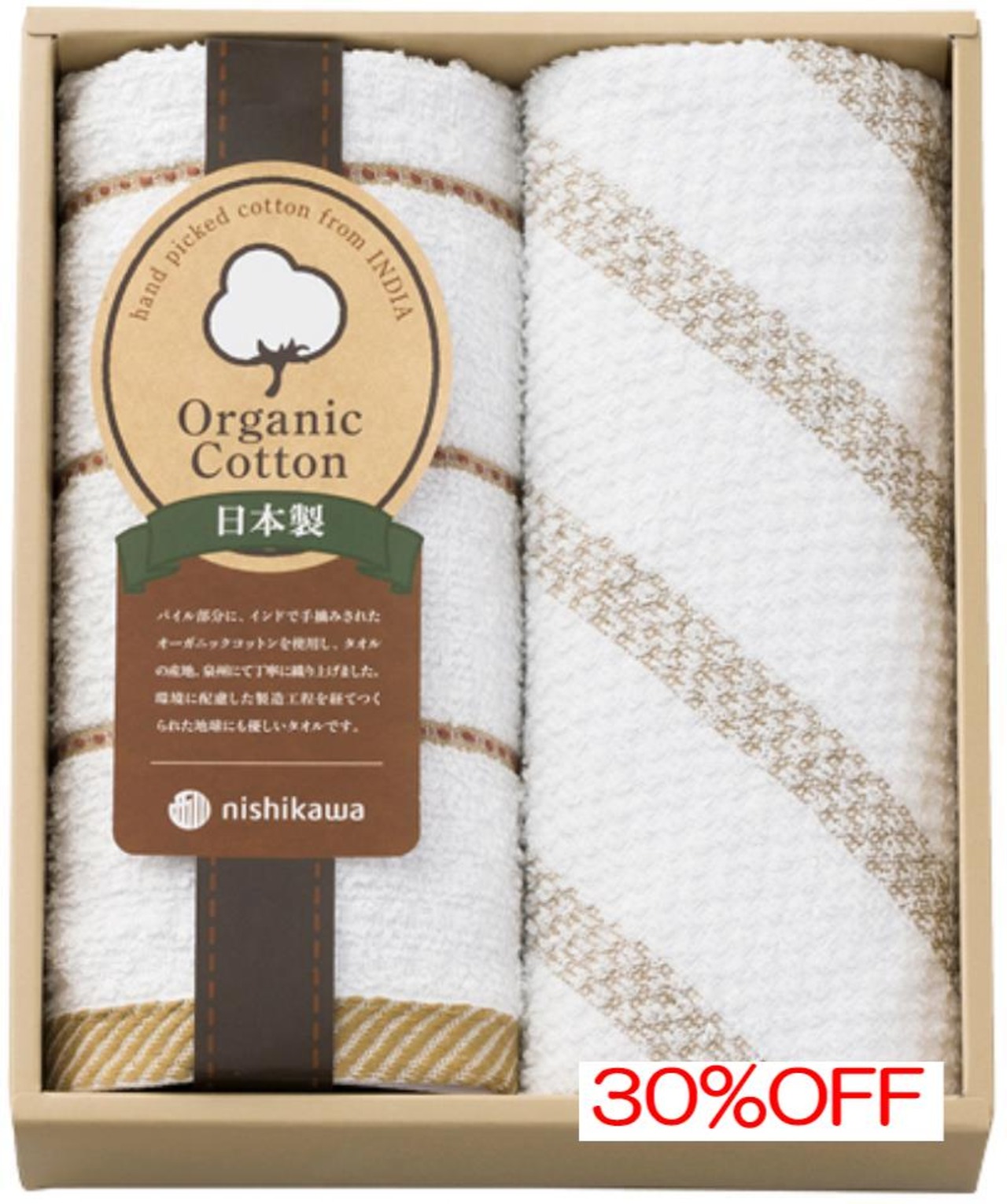 内祝 お返し引出物に ニシカワ オーガニックコットン ウォッシュタオル2枚セット TT83103505