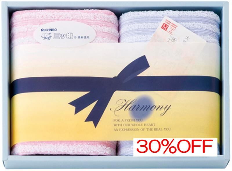 内祝 お返し引出物に NISSHINBO三ツ桃 リズムハーモニー 泉州ウォッシュタオル2枚セット RZ-1110