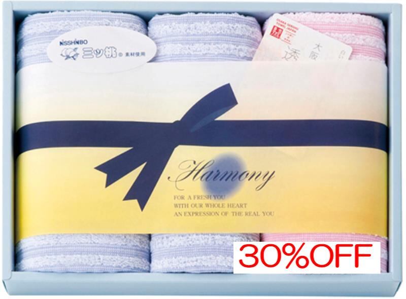 内祝 お返し引出物に NISSHINBO三ツ桃 リズムハーモニー 泉州タオルセット RZ-1120
