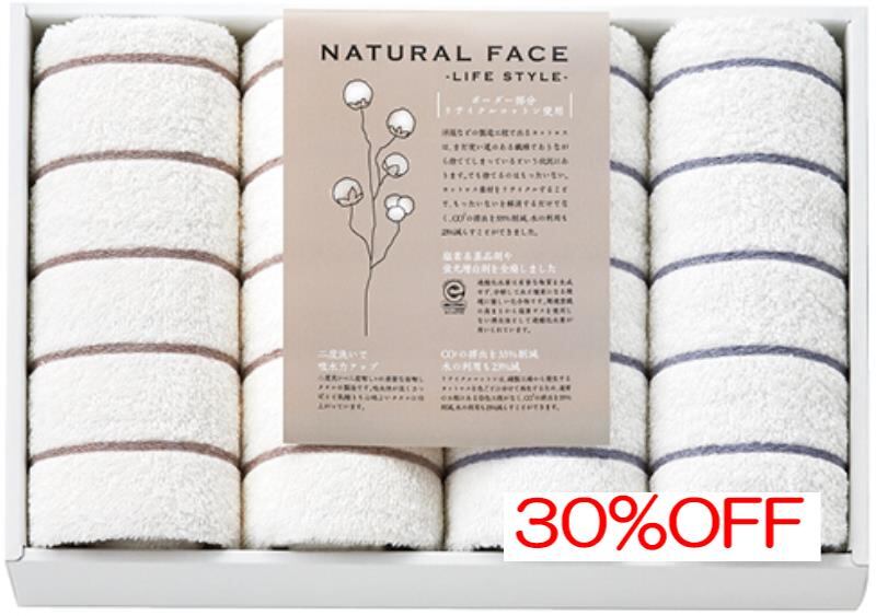 内祝 お返し引出物に ナチュラルフェイス ボーダーフェイスタオル4枚セット SDGS1030