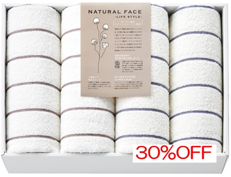 内祝 お返し引出物に ナチュラルフェイス ボーダーバスタオル4枚セット SDGS1100