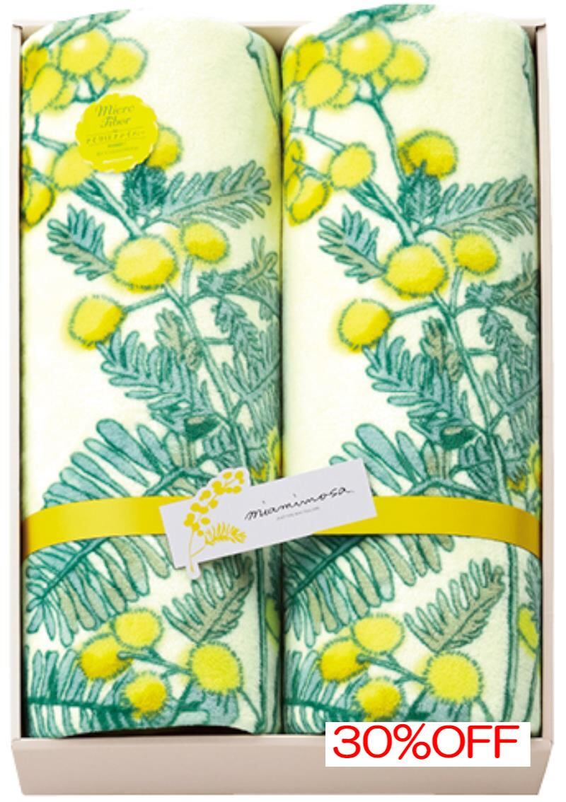 内祝 お返し引出物に ミアミモザ プリントマイクロファイバー毛布2枚セット MM81000