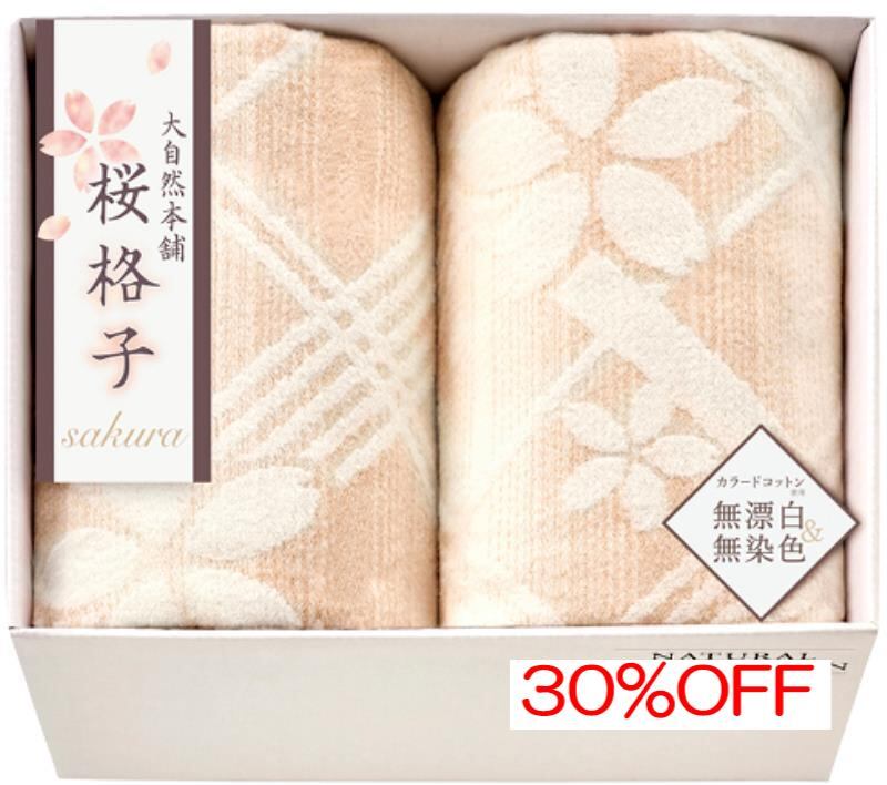 内祝 お返し引出物に 大自然本舗 〜桜格子〜 肌にやさしい自然色の綿毛布2枚セット SBN85200