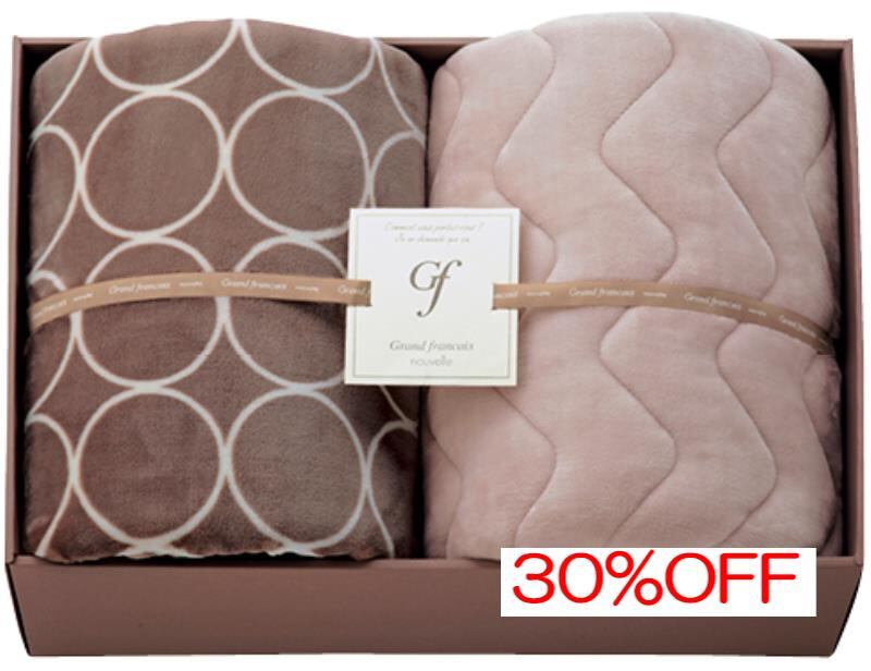 内祝 お返し引出物に グランフランセヌーベル ハイソフトタッチマイヤー毛布&吸湿発熱綿入りハイソフトタッチ敷パッド GFN8157GE