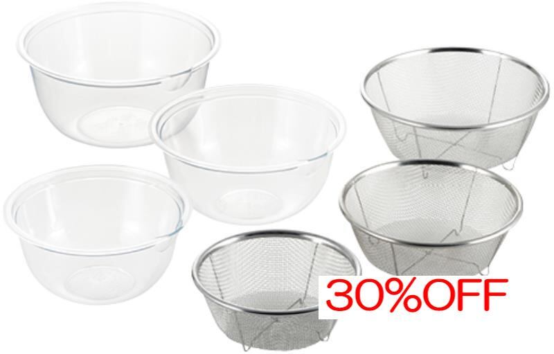 商品内容:内容/ボウル(大):φ21×9.7㎝・1900ml×1・ボウル(中):φ19×8.7㎝・1300ml×1・ボウル(小):φ17×8㎝・900ml×1・ザル(大):φ19×7.6㎝×1・ザル(中):φ17×6.2㎝×1・ザル(小):φ15×6㎝×1