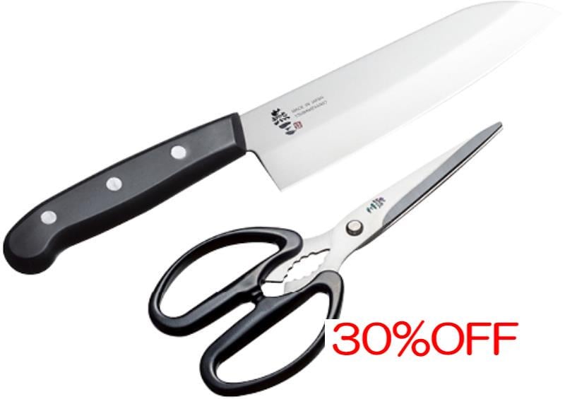 商品材料:材質/包丁:刃部:ステンレス刃物鋼、ハンドル:ポリプロピレン、鋲:ナイロン、ハサミ:刃部:ステンレス刃物鋼、ハンドル:ABS樹脂