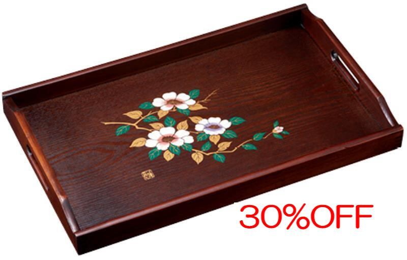 内祝 お返し引出物に 雅さざんか 木製17.0長手盆 M-2000