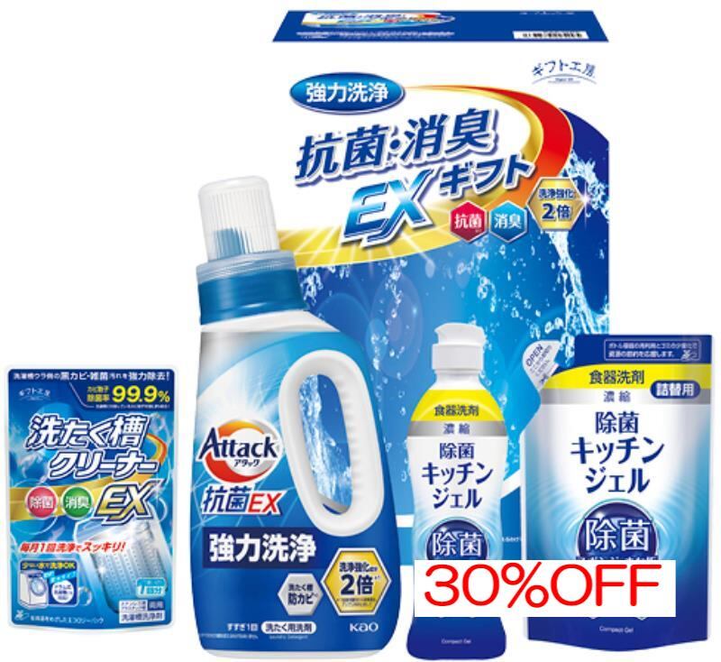 商品内容:内容/花王アタック抗菌EX:750g×1・除菌キッチンジェル:200ml×1・除菌キッチンジェル詰め替え用:160ml×1・洗たく槽クリーナーEX:100g×1