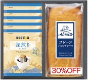 商品内容:内容/プレーンパウンドケーキ×1・ドトールドリップコーヒー深煎りブレンド:7g×5《卵・乳・小麦》