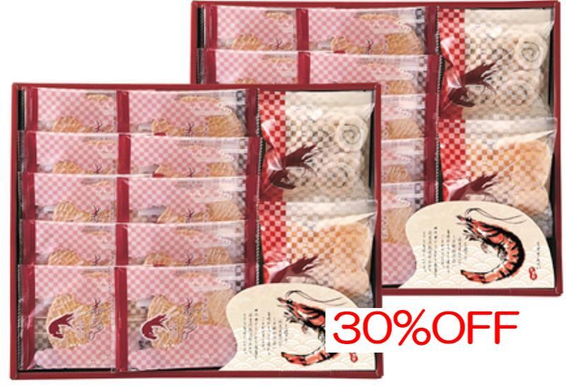 商品内容:内容/赤えびせんべい(1枚)×20・えびせん(うず巻):10g×2・えびせん(えび松風):10g×2《小麦・えび》