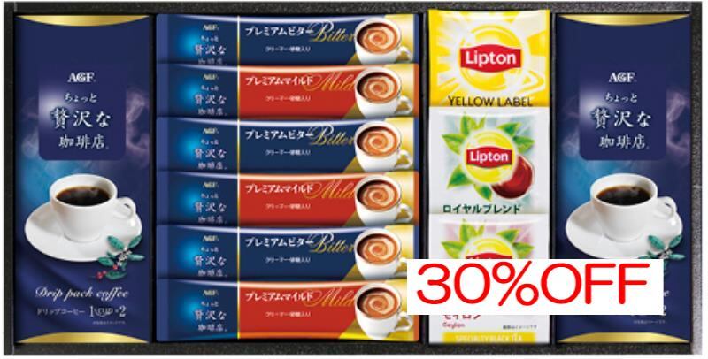 商品内容:内容/AGFちょっと贅沢な珈琲店スペシャルブレンド[ブラジル・ベトナム製他]:(7g×2袋)×2・AGFちょっと贅沢な珈琲店プレミアムマイルド[日本製]:7g×3・AGFちょっと贅沢な珈琲店プレミアムビター[日本製]:7g×3・リプトンイエローラベルティーバッグ[ケニア・インドネシア製他]:2g×2・リプトンロイヤルブレンドティーバッグ[インド・スリランカ製]:2.2g×2・リプトンセイロンティーバッグ[スリランカ製]:2.2g×2《乳》