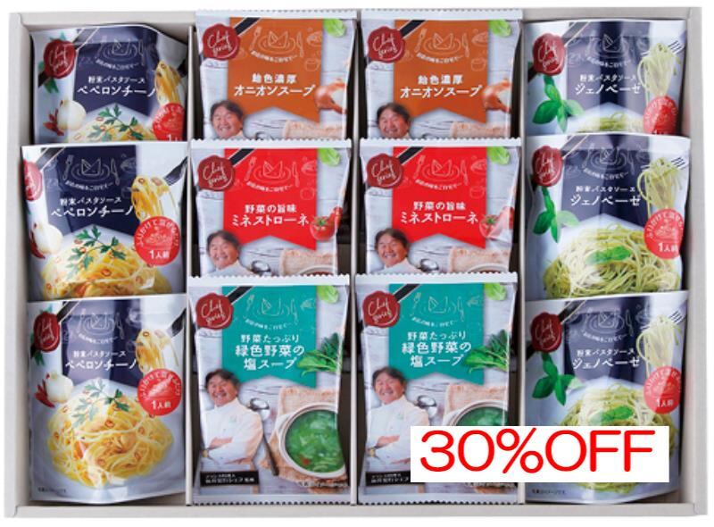 商品内容:内容/オニオンスープ×2・ミネストローネ×2・緑色野菜の塩スープ×2・ジェノベーゼ粉末パスタソース×3・ペペロンチーノ粉末パスタソース×3《乳・小麦》