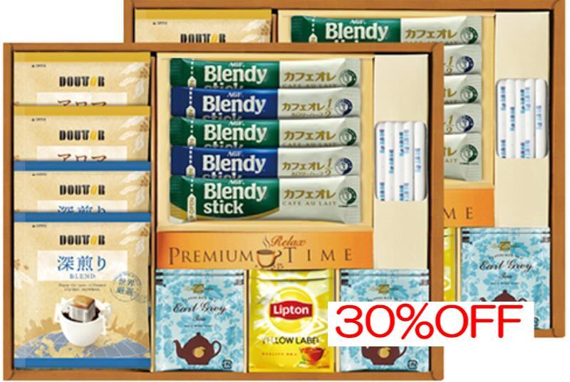 商品内容:内容/ドトールドリップコーヒーアロマブレンド×4・ドトールドリップコーヒー深煎りブレンド×4・リプトンイエローラベル×4・アールグレイ紅茶ティーバッグ×8・ブレンディスティックカフェオレ×6・ブレンディスティックカフェオレ(カロリーハーフ)×4・ドトールスティックシュガー15本×2《乳》