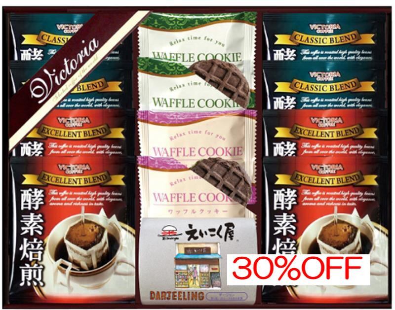 内祝 お返し引出物に VICTORIA COFFEE 酵素焙煎ドリップコーヒー&えいこく屋の紅茶・クッキーセット VEM-20
