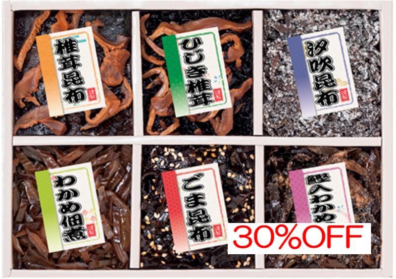 商品内容:内容/ごま昆布:40g×1・椎茸昆布:40g×1・汐吹昆布:15g×1・ひじき椎茸:40g×1・わかめ佃煮:40g×1・鰹入わかめ昆布:40g×1