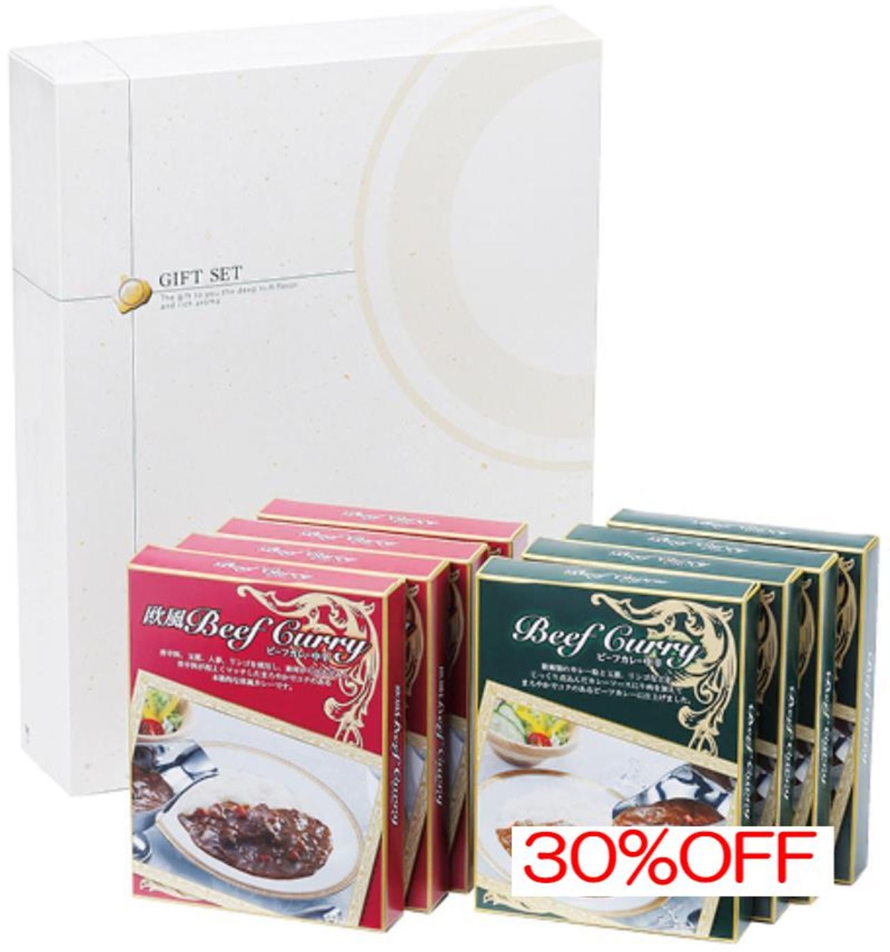 商品内容:内容/ビーフカレーレギュラー(中辛):150g×4・ビーフカレー欧風(中辛):150g×4《小麦》