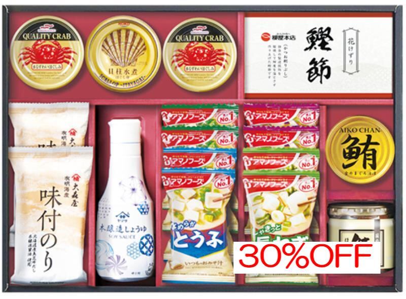 商品内容:内容/ヤマサ本醸造しょうゆ:200ml×1・アマノフーズいつものおみそ汁なす×2・アマノフーズいつものおみそ汁ほうれん草×2・アマノフーズいつものおみそ汁とうふ×2・アマノフーズいつものおみそ汁長ねぎ×2・大森屋味付のり:8切5枚×2・かつお削り節:3g×3袋×1・まぐろ油漬けフレーク:70g×1・貝柱水煮ほぐし身:35g×1・鮭ほぐし:50g×1・まるずわいがにほぐしみ:55g×2《小麦・えび・かに》