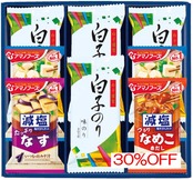 商品内容:内容/白子のり味のり:8切5枚×4・減塩いつものおみそ汁(とうふ):10.3g×2・減塩いつものおみそ汁(なす):9g×1・減塩いつものおみそ汁(なめこ):8g×1《乳・小麦・えび》