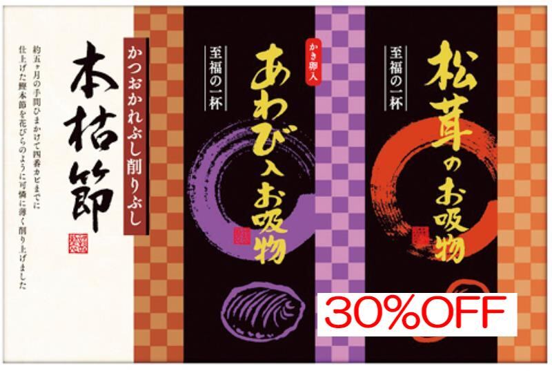 商品内容:内容/あわび入お吸い物:4g×1・松茸のお吸い物:4.2g×1・本枯れ節削り節:2g×2《卵・乳・小麦》