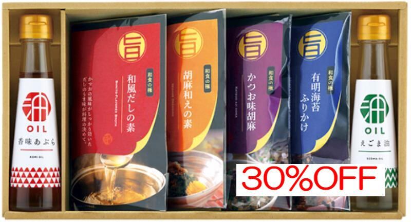 商品内容:内容/香味あぶら:90g×1・和風だしの素:4g×3袋×1・胡麻和えの素:5g×2袋×1・かつお味胡麻:4g×2袋×1・有明海苔ふりかけ:5g×2袋×1・えごま油:90g×1《乳・小麦》