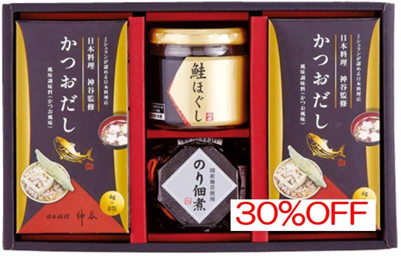 商品内容:内容/鮭ほぐし:50g×1・のり佃煮:80g×1・かつおだし:4g×8袋×2《乳・小麦》