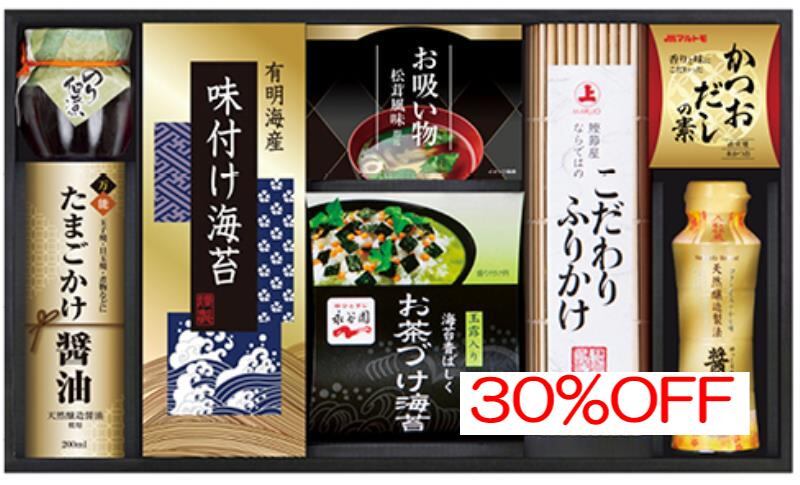 商品内容:内容/島の香のり佃煮:80g×1・有明海産味付け海苔:3切6枚×1・永谷園お吸いもの松茸風味:2.3g×4袋×1・永谷園お茶づけ海苔:6.3g×3袋×1・こだわりふりかけ:6g×3袋×1・マルトモかつおだしの素:4g×4袋×1・伊賀越たまごかけ?油:200ml×1・伊賀越天然醸造しょうゆ:200ml×1《乳・小麦》