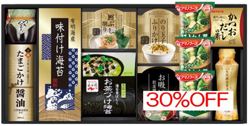 商品内容:内容/島の香のり佃煮:80g×1・有明海産味付け海苔:3切6枚×1・鰹ぶし削り:2g×3袋×1・永谷園お茶づけ海苔:6.3g×3袋×1・のり玉子ふりかけ:4.5g×2袋×1・永谷園お吸いもの松茸風味:2.3g×4袋×1・アマノほうれん草おみそ汁:7g×3・マルトモかつおだしの素:4g×4袋×1・伊賀越たまごかけ?油:200ml×1・伊賀越天然醸造しょうゆ:200ml×1《卵・乳・小麦》