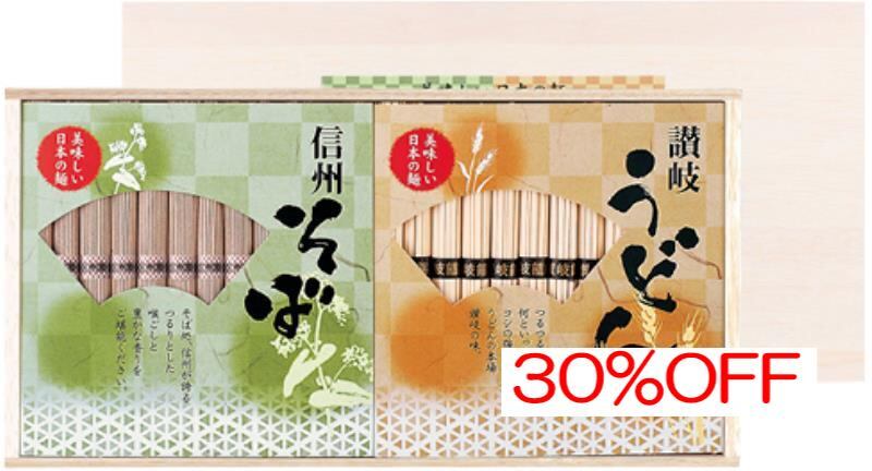 内祝 お返し引出物に 讃岐うどん・信州そば(木箱入) URS-30