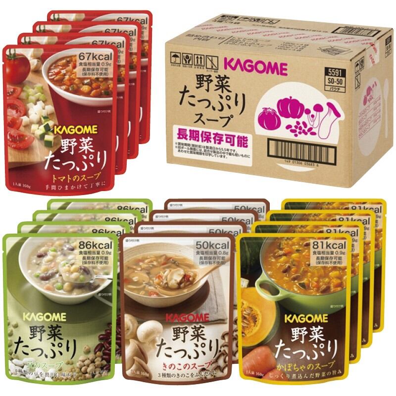 商品内容:野菜たっぷり(トマトのスープ・かぼちゃのスープ・豆のスープ・きのこのスープ)(各160g)×各4