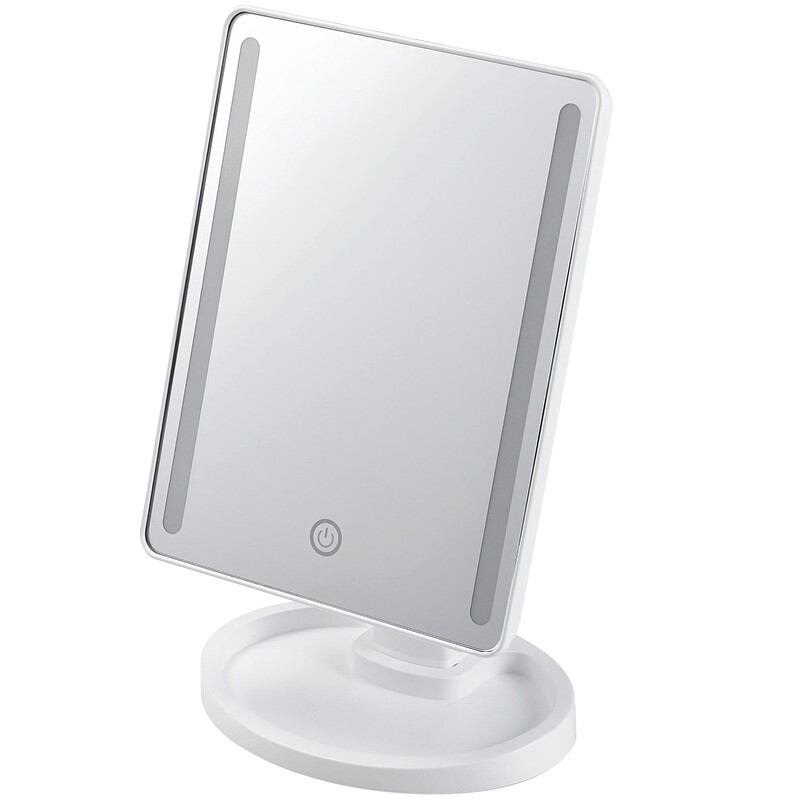 くるっと回転して縦・横の切り替えができます。ミラー内に眩しすぎず、お肌を美しく照らすLEDライトが内蔵。ワンタッチでライトのON/OFFが出来ます。ピアスや化粧品等を仮置きするのに便利なスペース付。