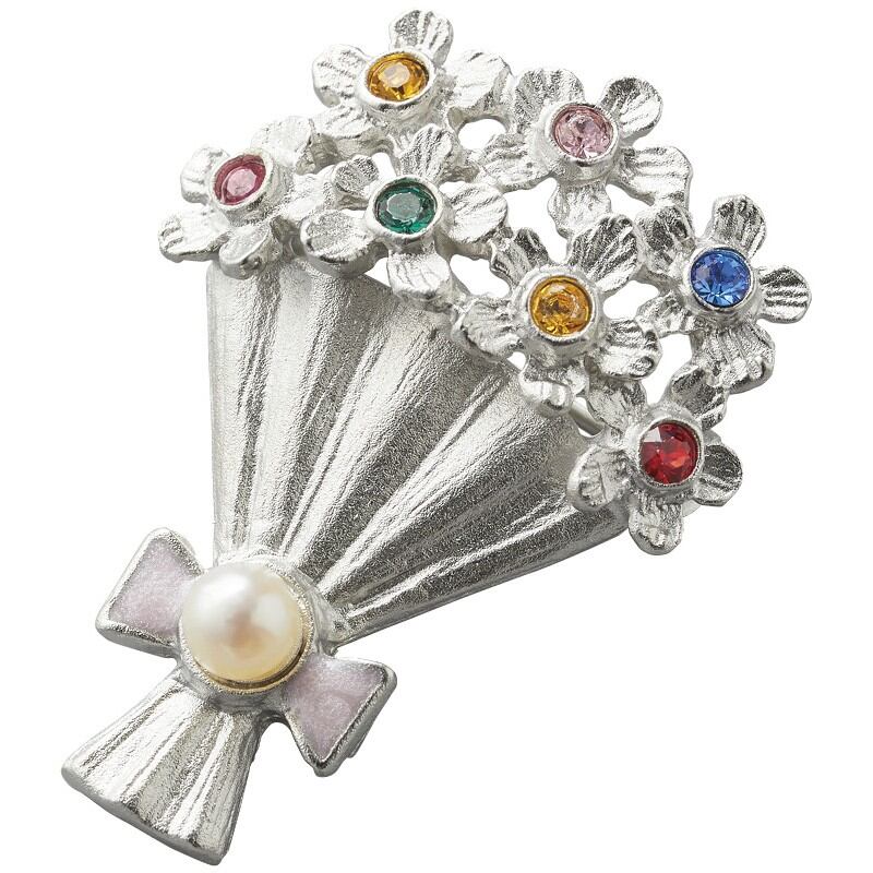 花束をモチーフにしたアコヤ本真珠ブローチです。花びらの部分や紙のしわなど、リアルに表現されて