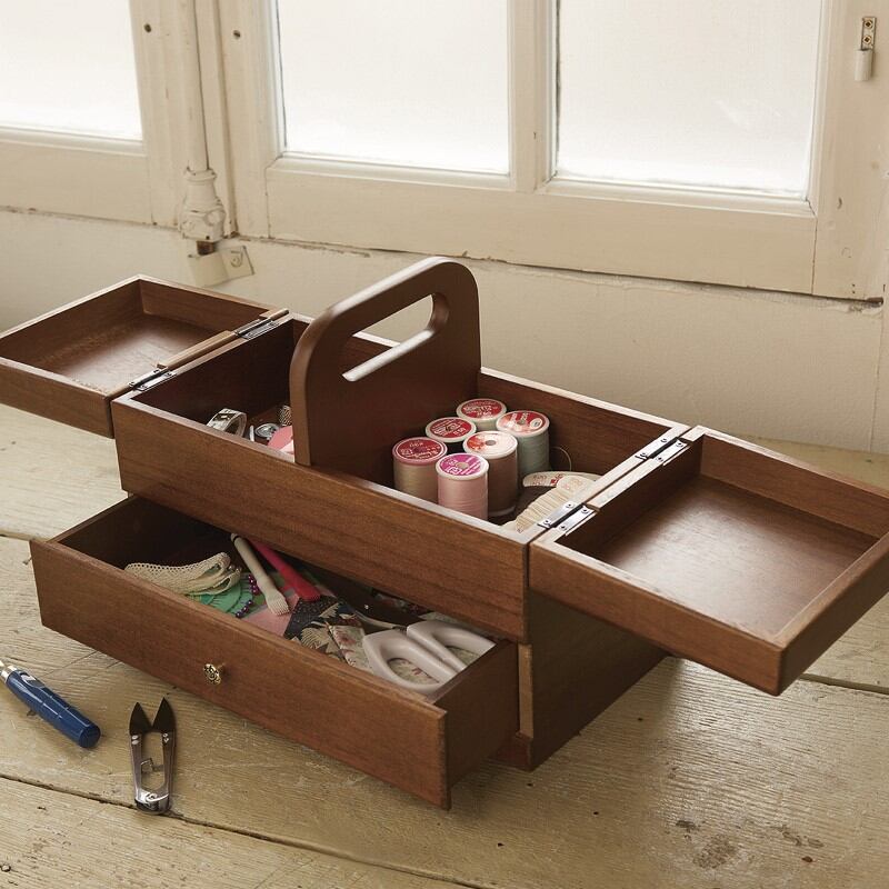 日本の職人さんがひとつひとつ丁寧につくった木製のソーイングボックス。