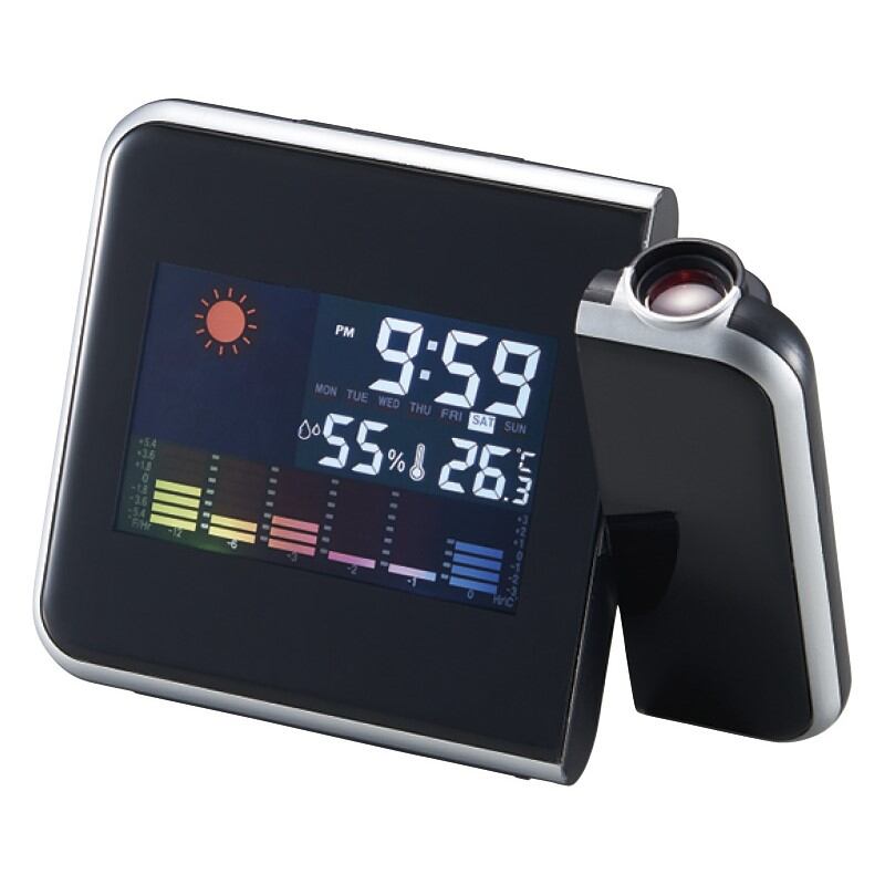 機能:時計、アラーム、スヌーズ、カレンダー、温度計、湿度計、気温変化グラフ、天気予報、バックライト、時刻プロジェクター