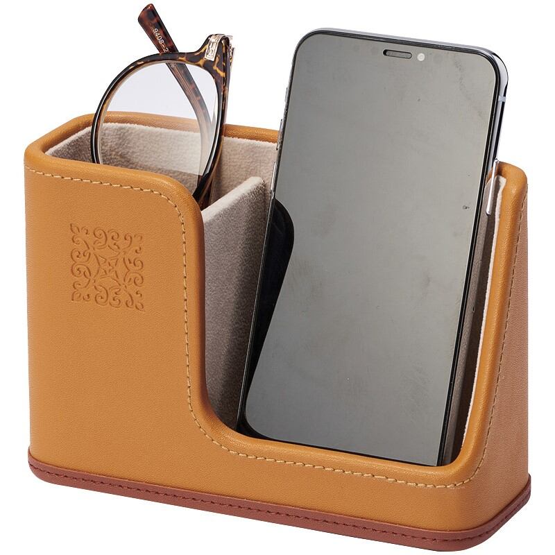 ベルベット調の生地が、メガネやスマホといった収める小物を優しく保護します。