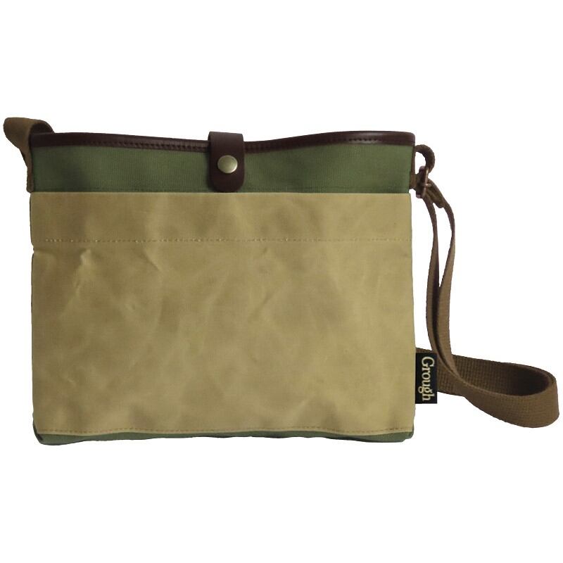 そだてる帆布Grough サコッシュ ベージュ×カーキ パラフィン加工帆布×レザー GRH50800-KH