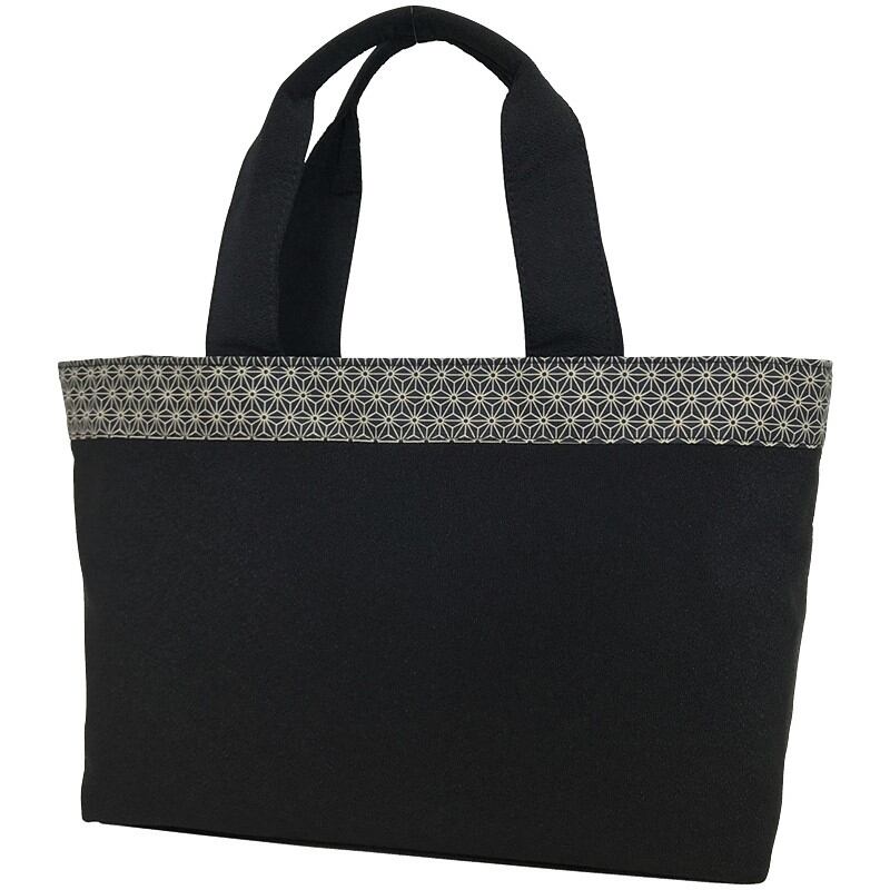 京都三昌 麻の葉柄手提げバッグ ブラック 63143-03