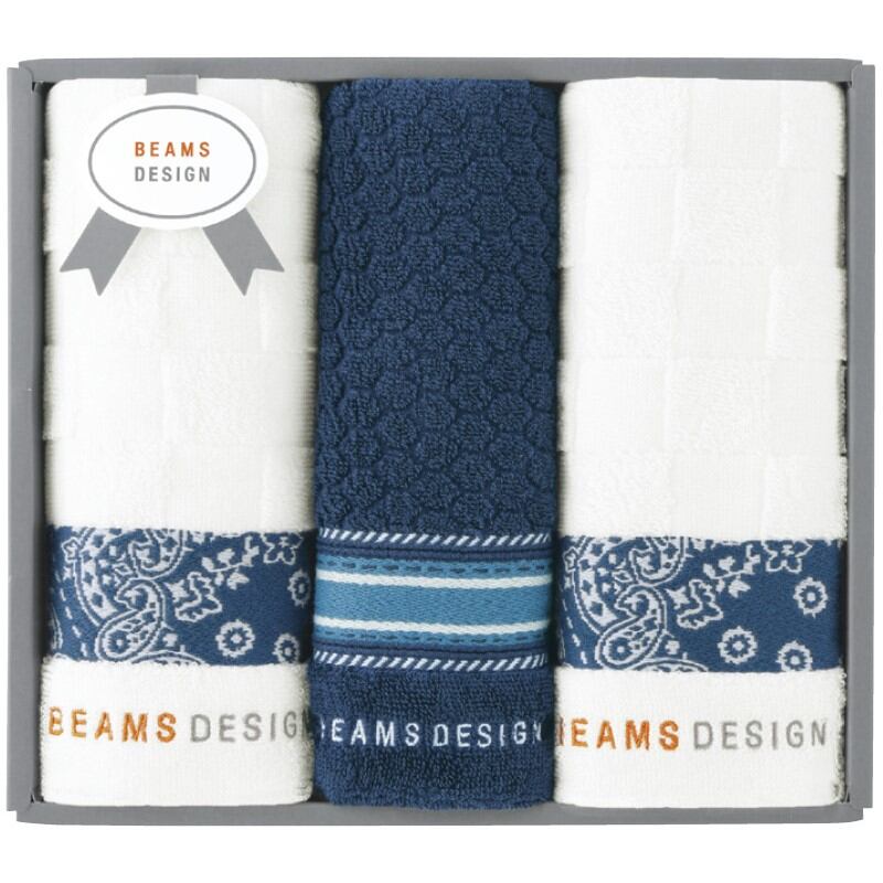 BEAMS DESIGN フェイスタオル2P&タオルハンカチ ネイビーブルー チェッカーバンダナ 51-3139250NB