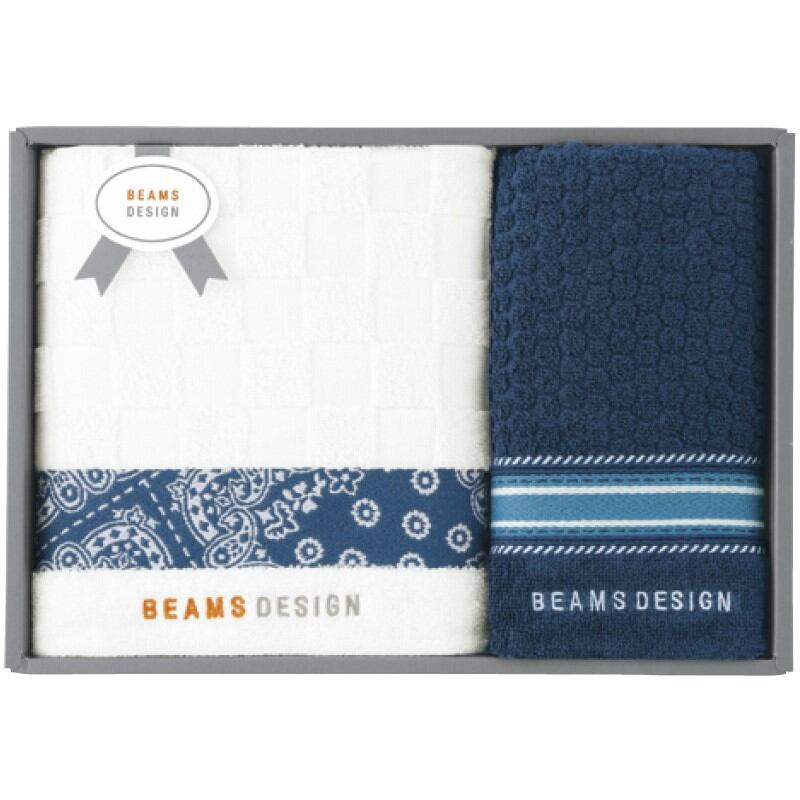 BEAMS DESIGN バスタオル&フェイスタオル ネイビーブルー チェッカーバンダナ 51-3139400NB