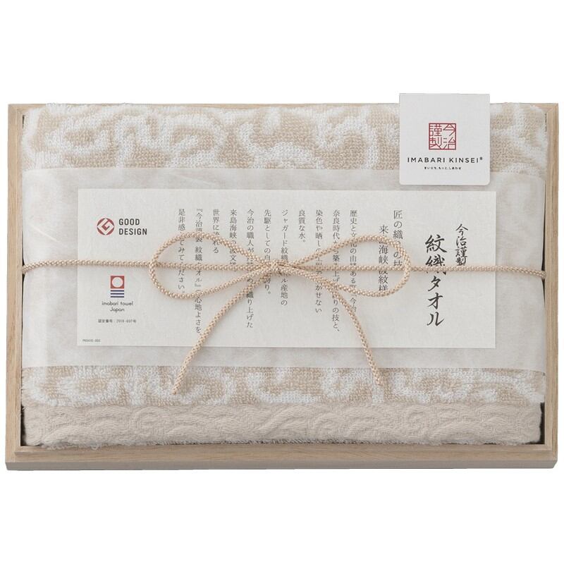 今治謹製 フェイスタオル(木箱入) ベージュ 紋織タオル IM7710BE