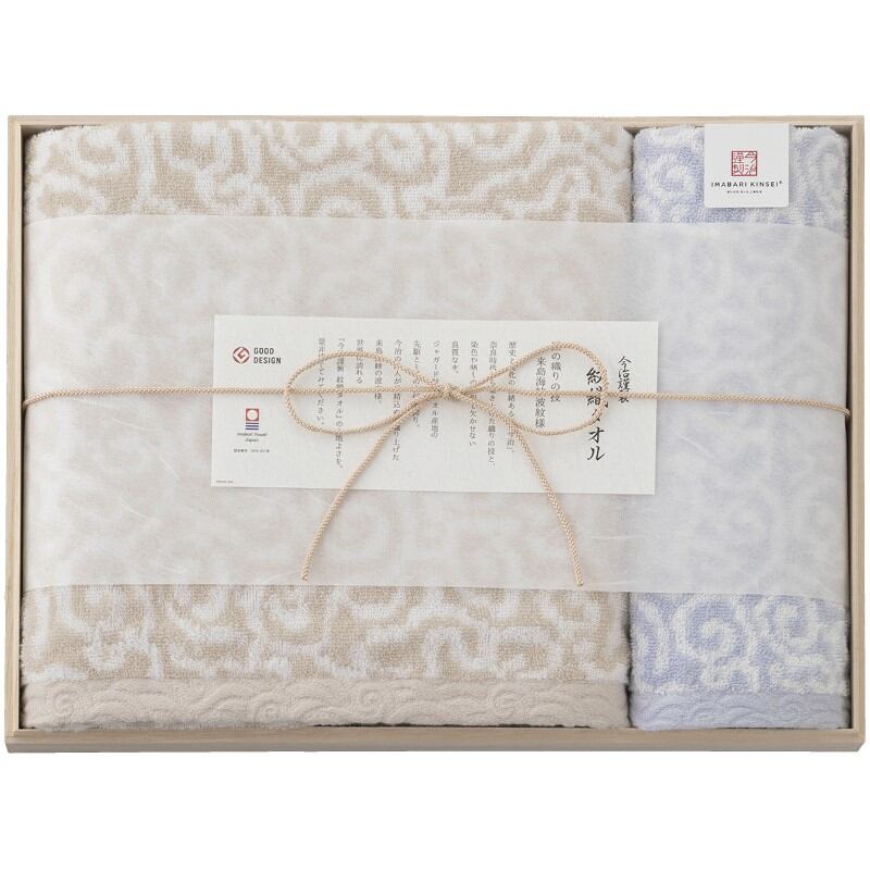 今治謹製 バスタオル&ウォッシュタオル(木箱入) ブルー 紋織タオル IM7730BL