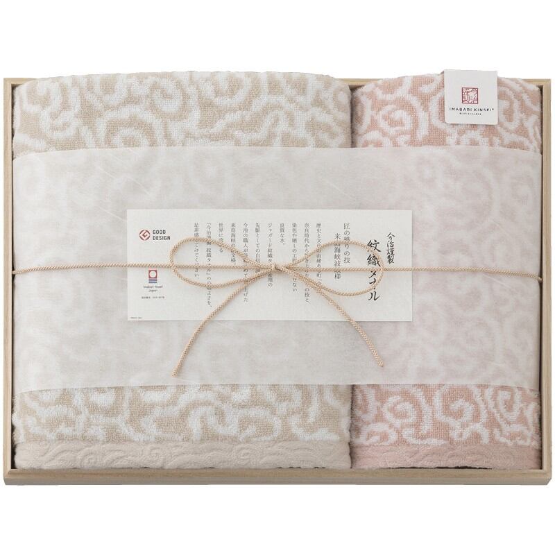 今治謹製 バスタオル&フェイスタオル(木箱入) ピンク 紋織タオル IM7735PI