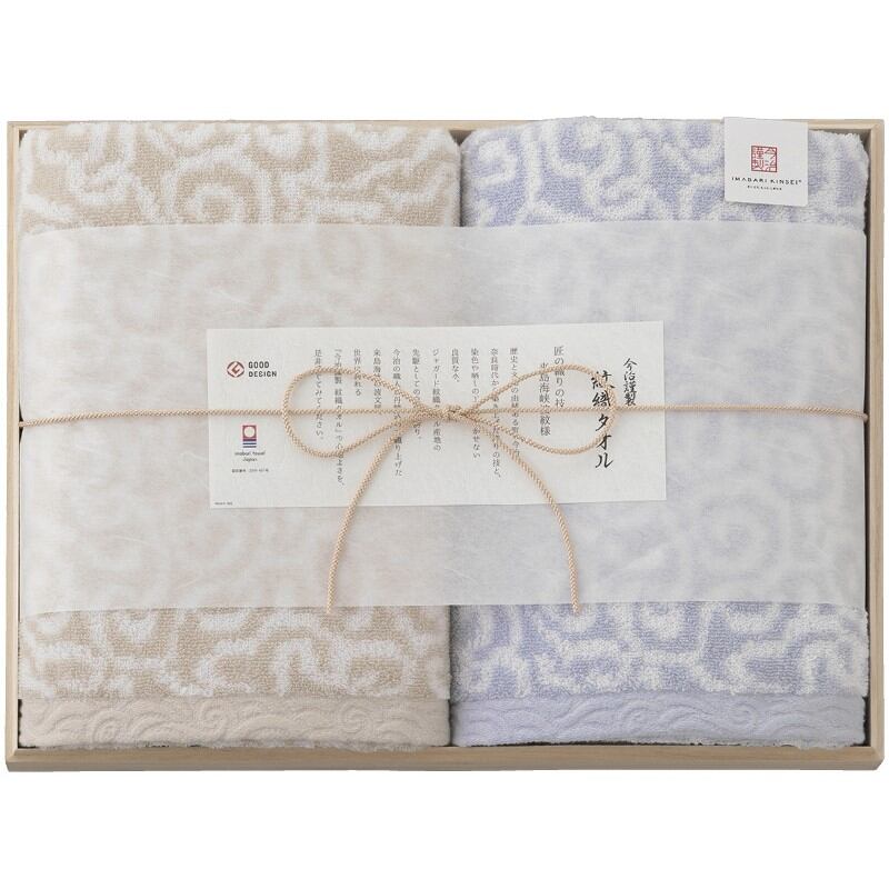 今治謹製 バスタオル2P(木箱入) ブルー 紋織タオル IM7750BL