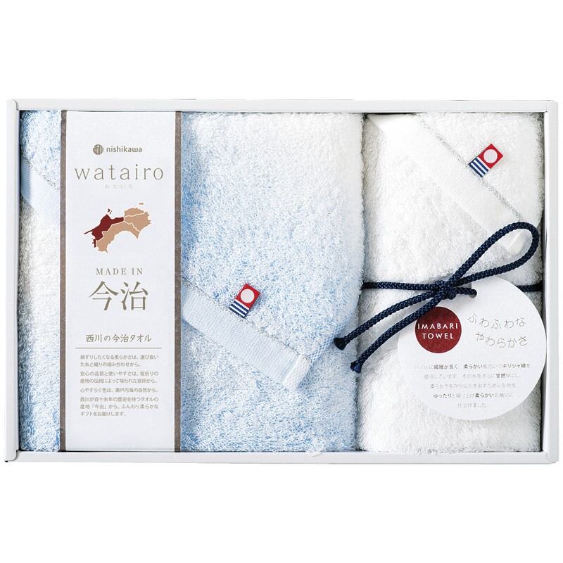 わたいろ フェイスタオル&ウォッシュタオル ブルー nishikawa今治タオル TBF2497011B