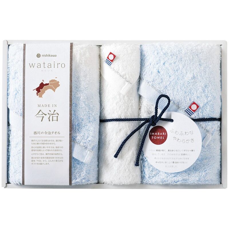 わたいろ フェイスタオル2P&ウォッシュタオル ブルー nishikawa今治タオル TBF3497211B