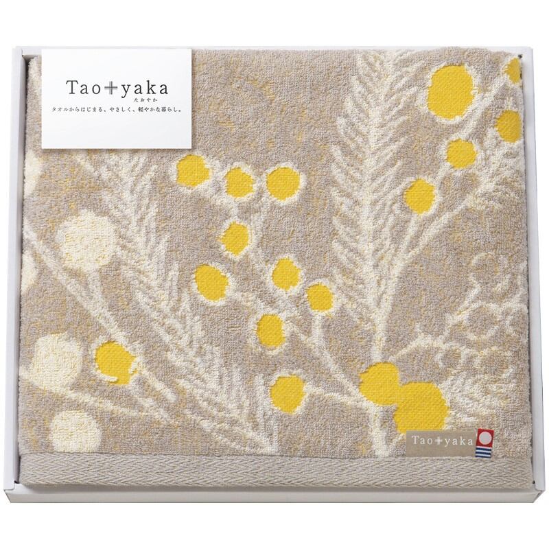 「感謝」「友情」「密かな愛」そんな素敵な花言葉を持ったミモザはふわふわとしたたくさんの黄色い花が特徴です。ミモザの花をふんだんにあしらったタオルはタオル産地、今治で織られ吸水性も抜群。やわらかでナチュラルな黄色と落ちついたグレーベージュのデザインはどんな部屋にも馴染み、インテリアにもぴったりです。